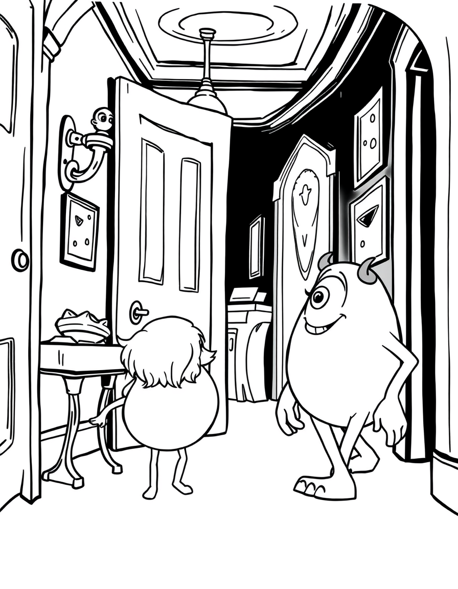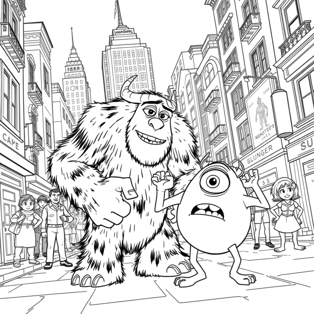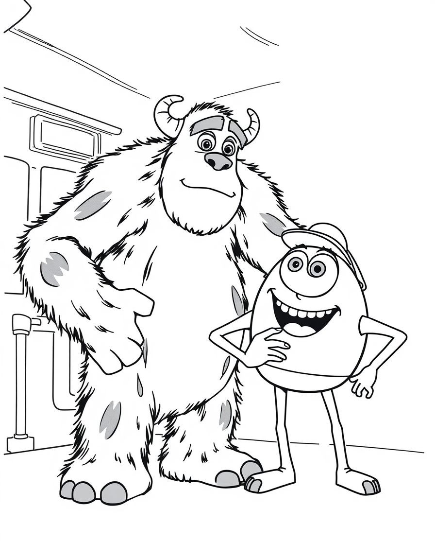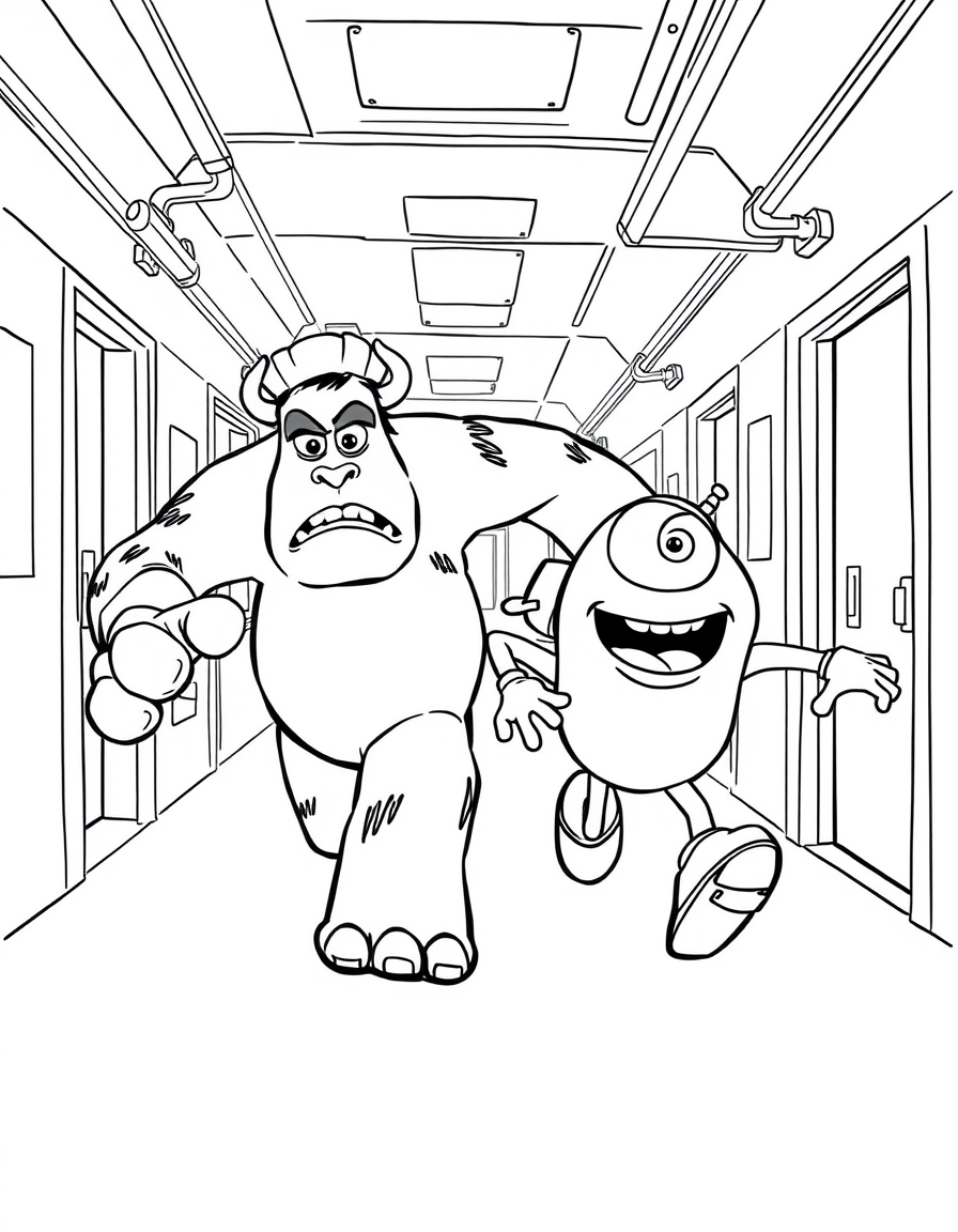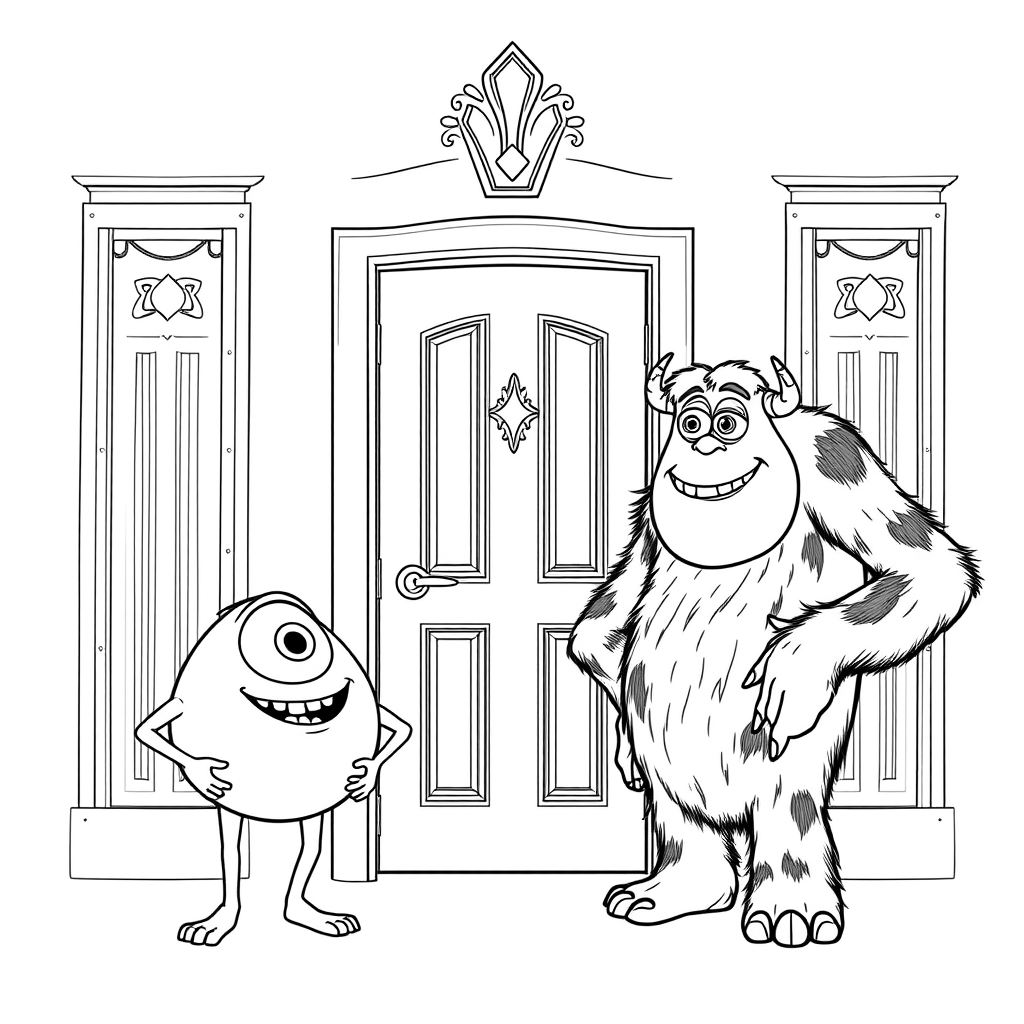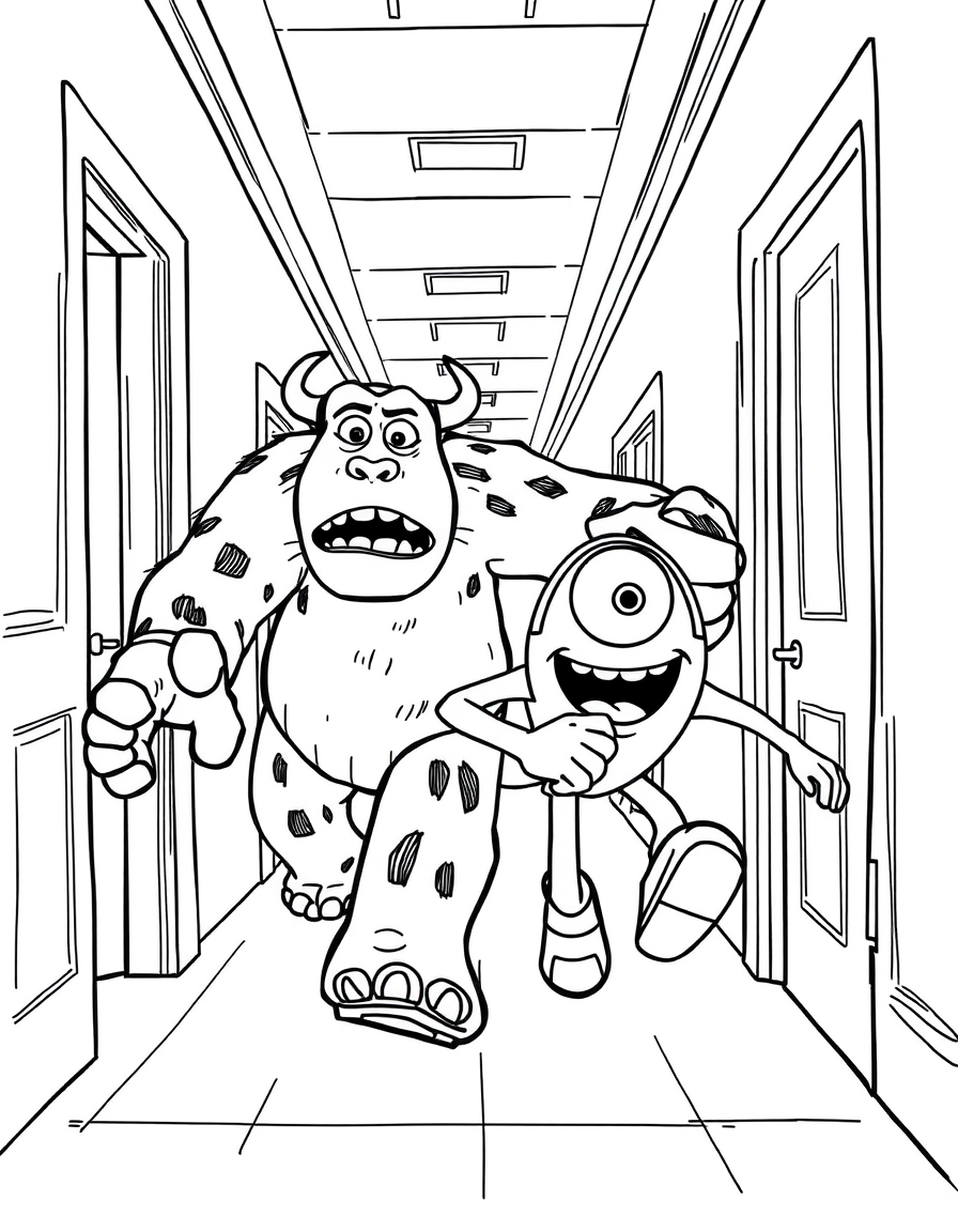 Бесплатные раскраски Корпорация монстров для печати: чёткие контуры, белый фон, удобно распечатать на A4.