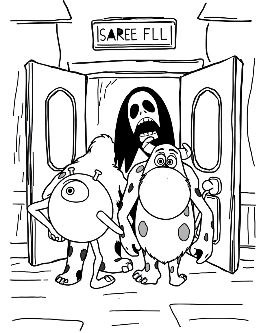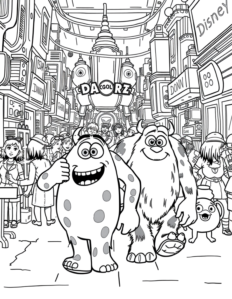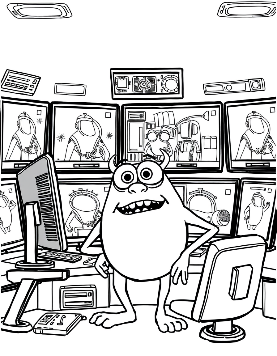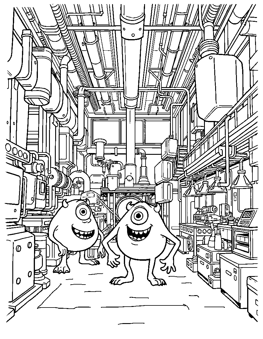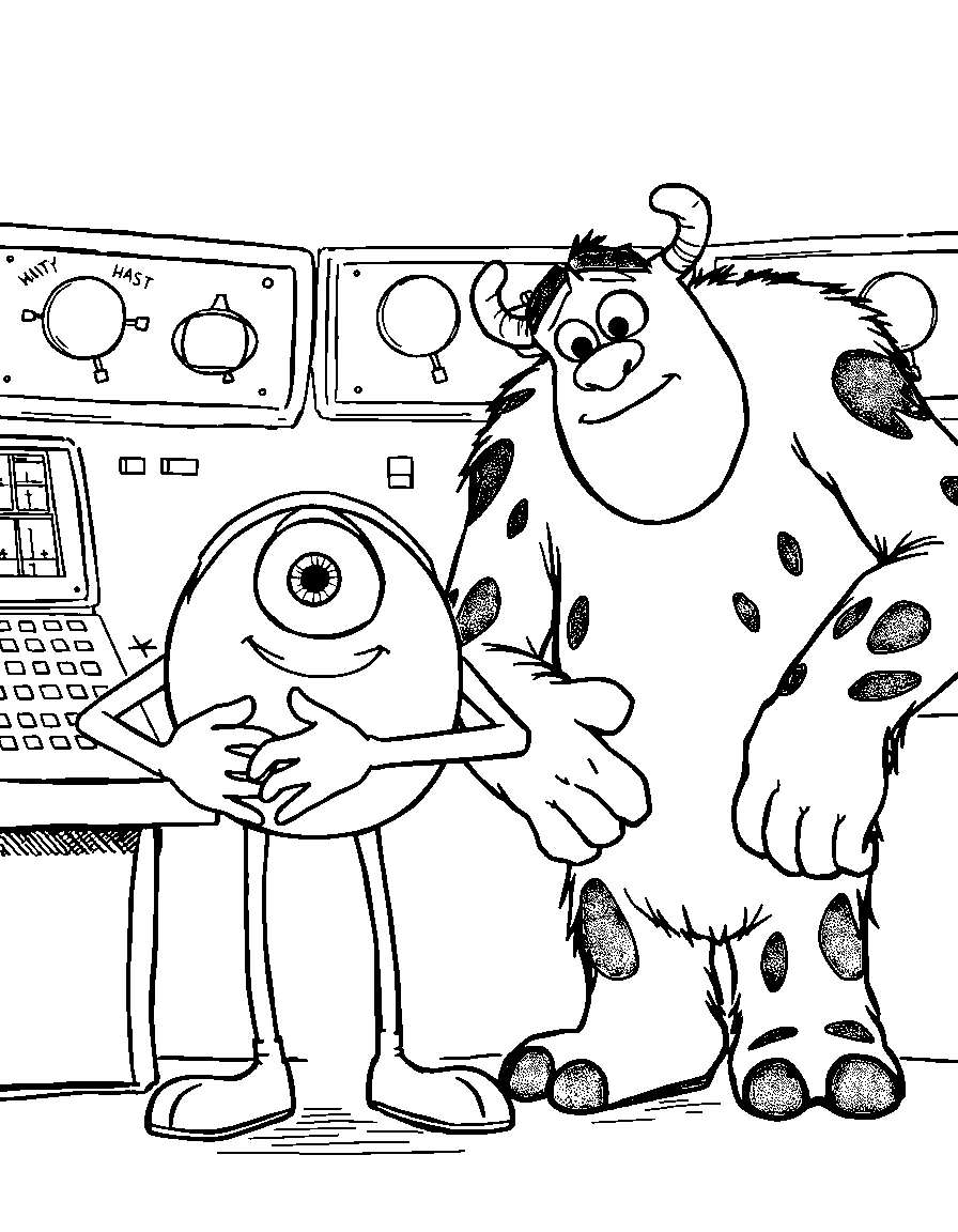 Бесплатные раскраски Корпорация монстров для печати: чёткие контуры, белый фон, удобно распечатать на A4.