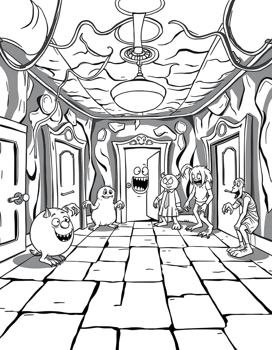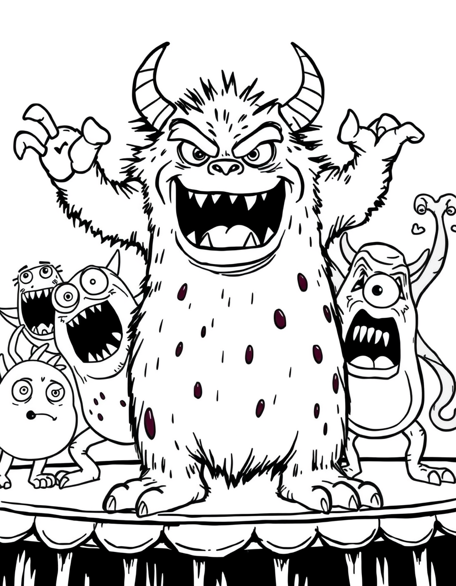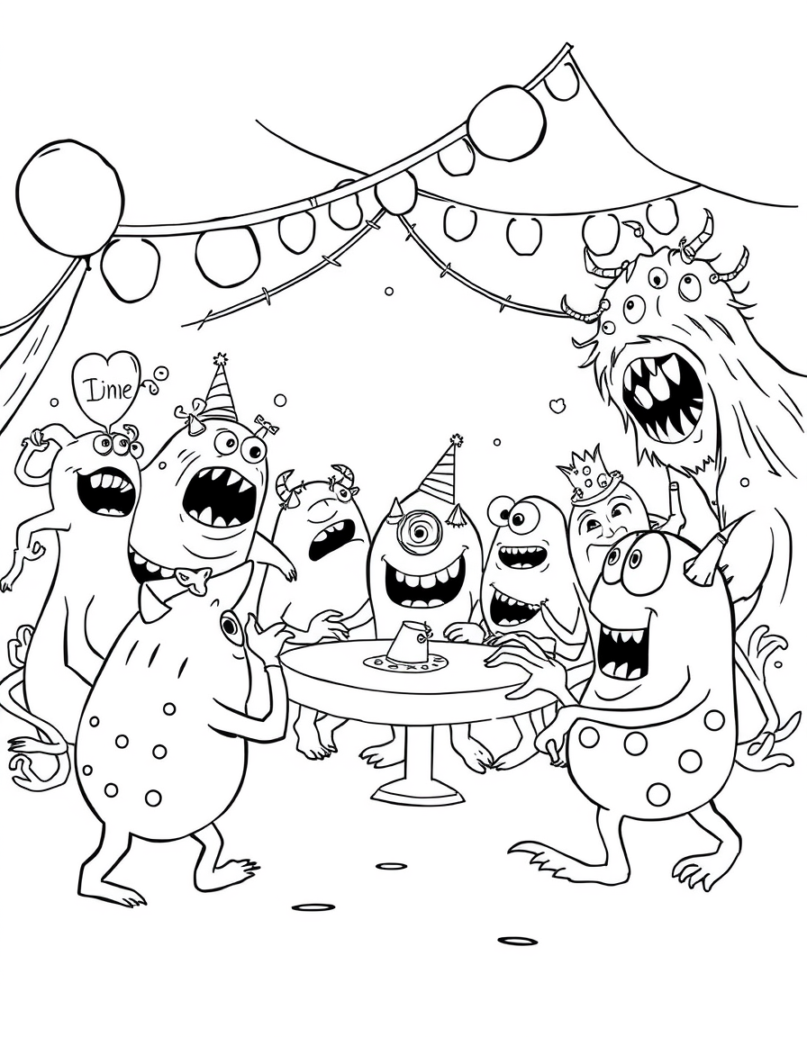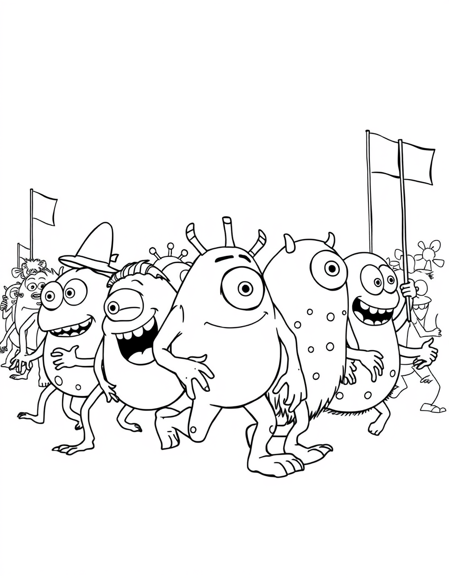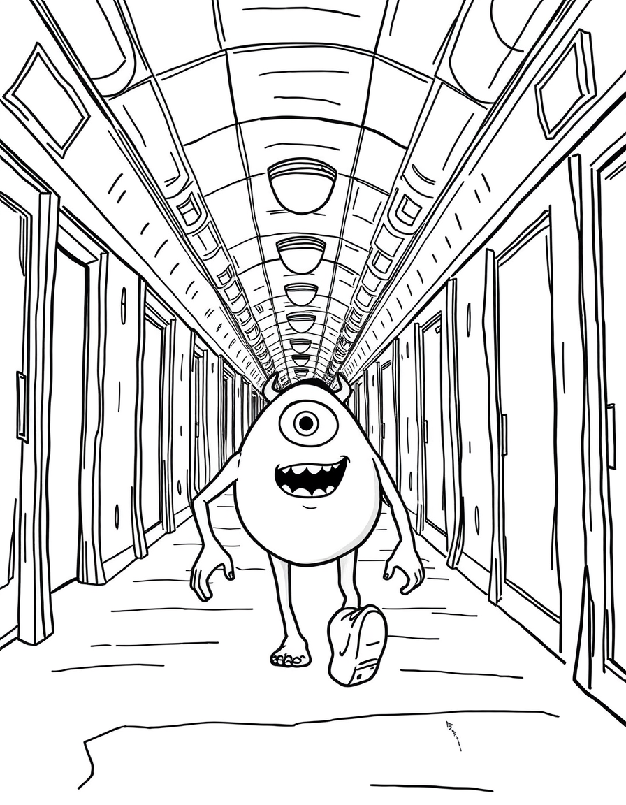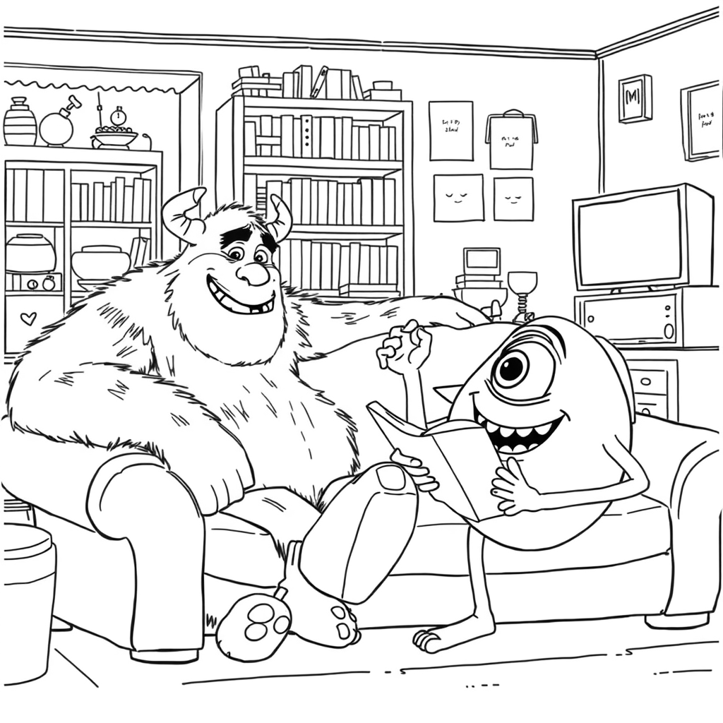 Бесплатные раскраски Корпорация монстров для печати: чёткие контуры, белый фон, удобно распечатать на A4.