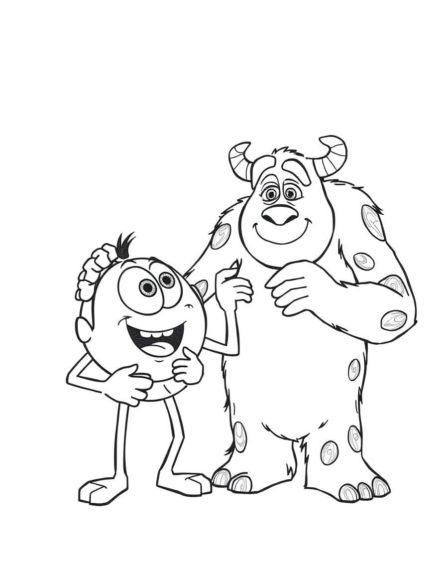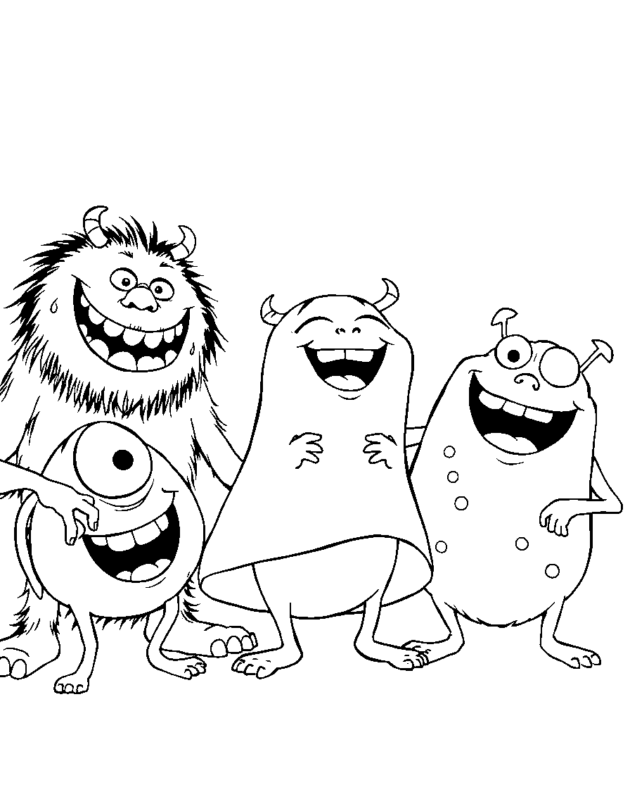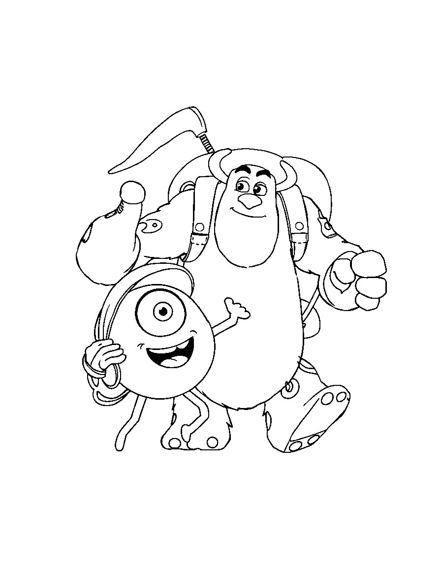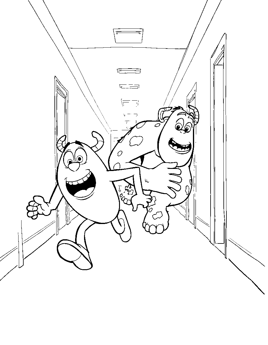Бесплатные раскраски Корпорация монстров для печати: чёткие контуры, белый фон, удобно распечатать на A4.