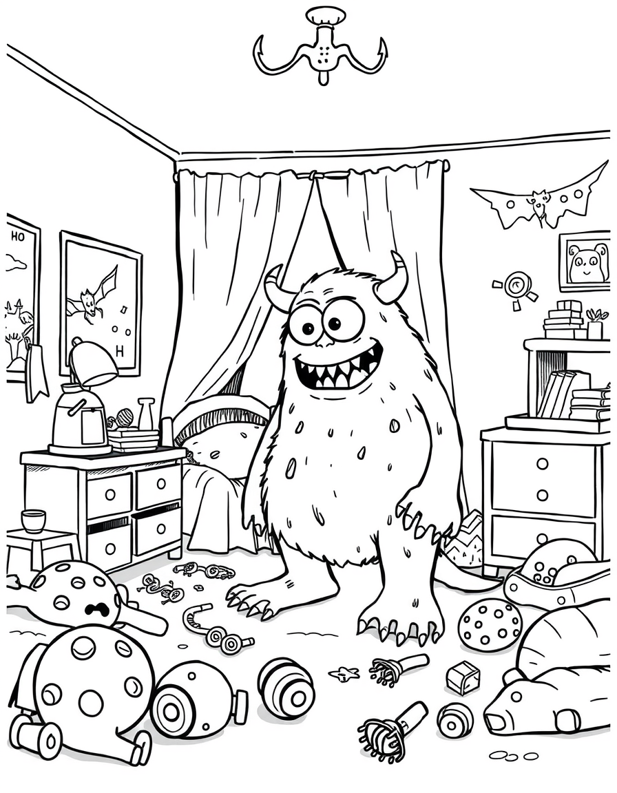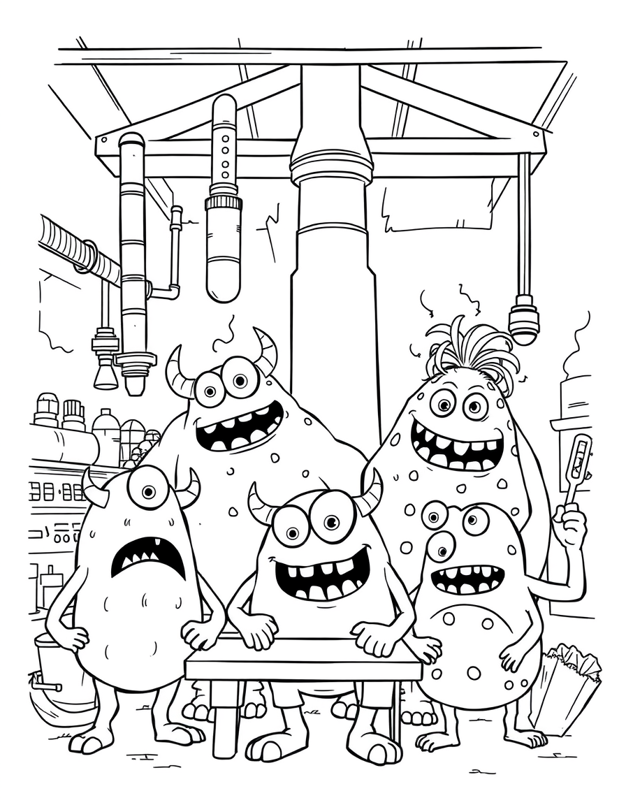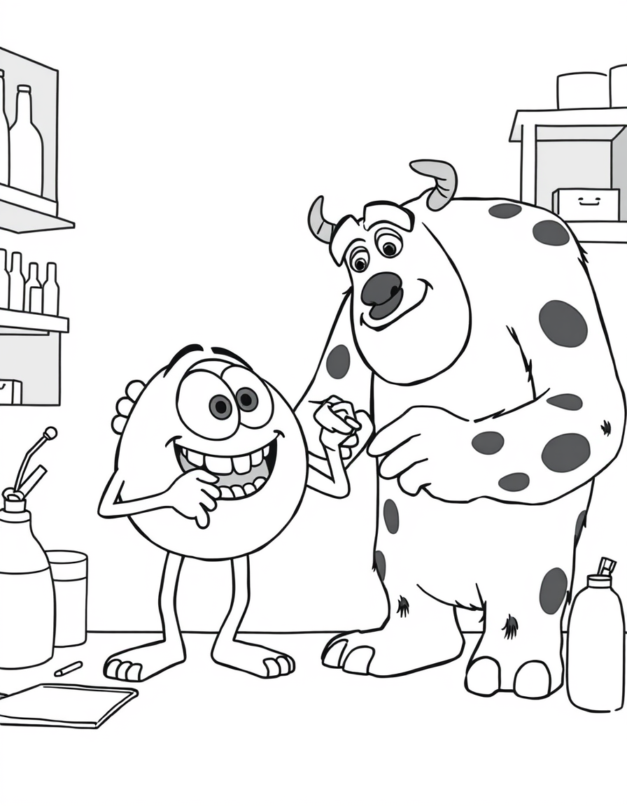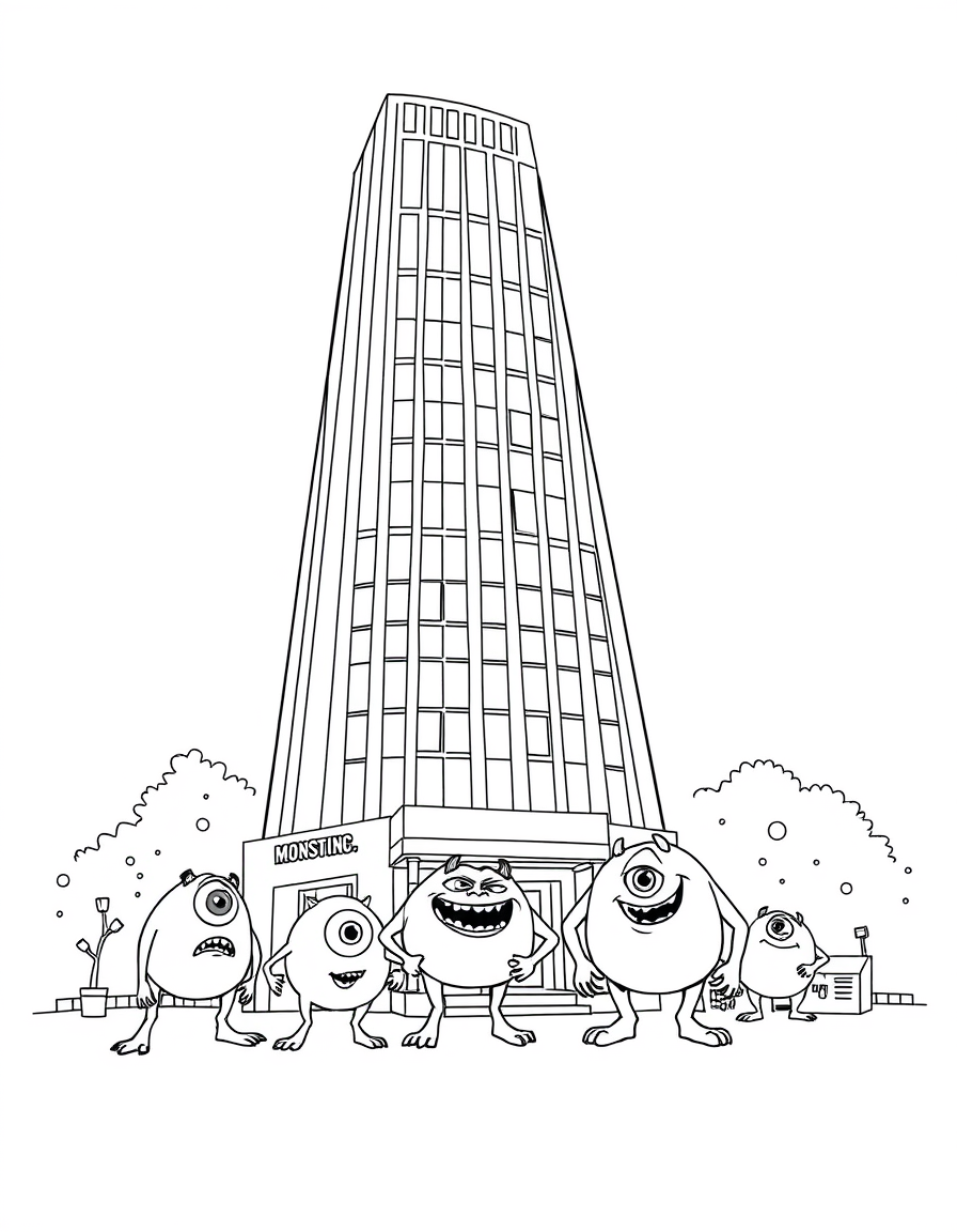 Бесплатные раскраски Корпорация монстров для печати: чёткие контуры, белый фон, удобно распечатать на A4.