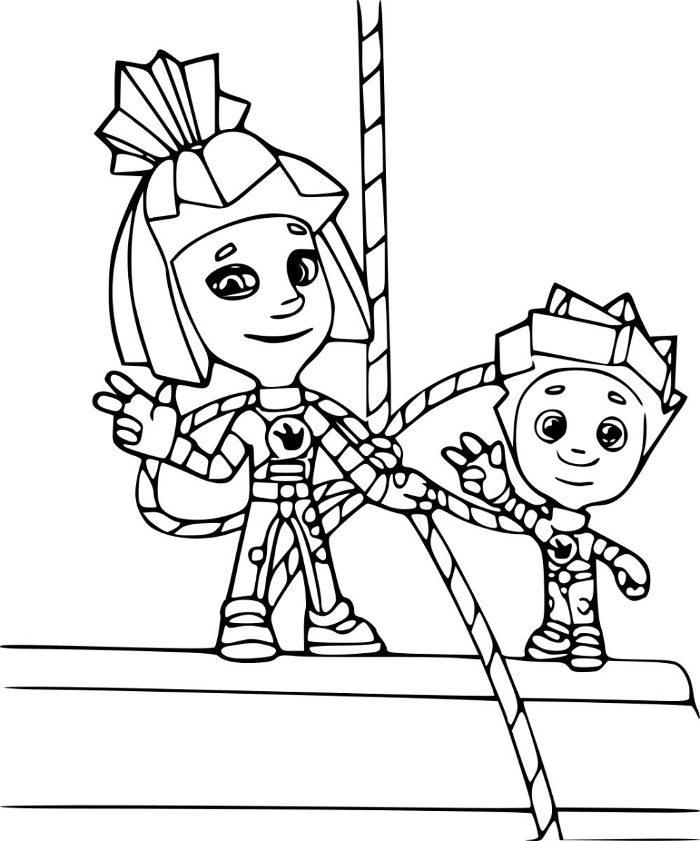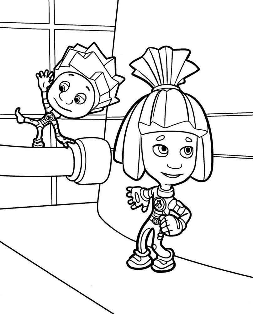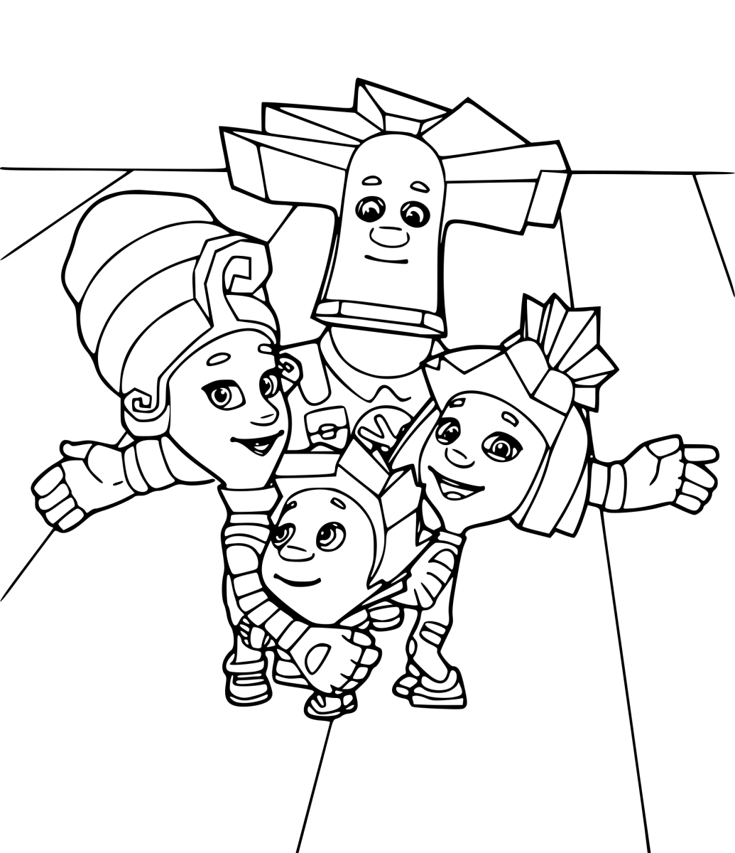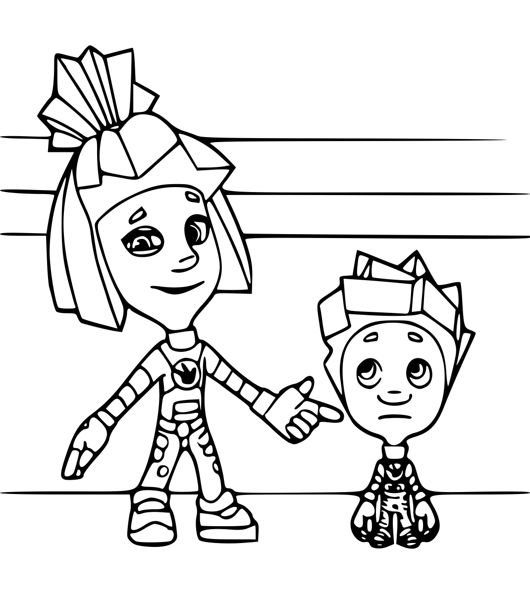 Бесплатная раскраска Фиксики для печати: чёткие контуры, белый фон, удобно распечатать на A4.